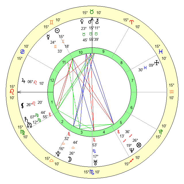 | Mars | 15 Taurus 55 | 24 Leo 5 | 18 Gemini 34 |