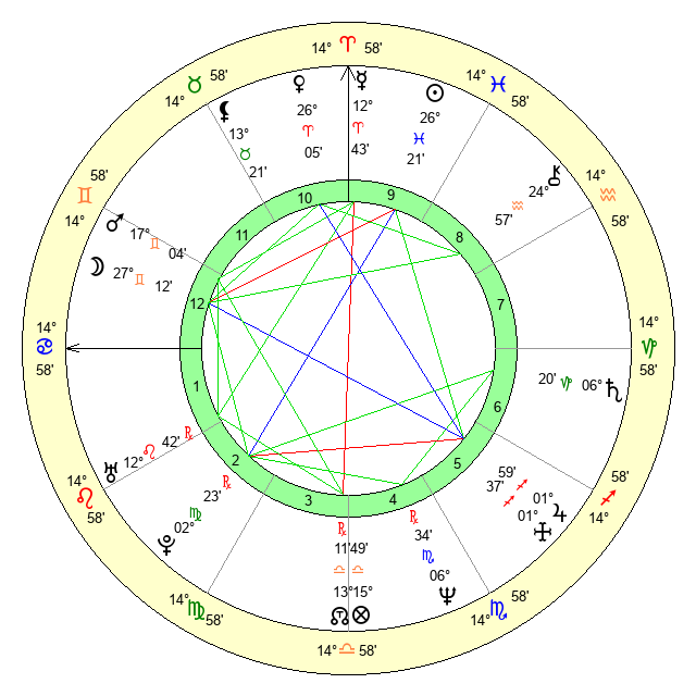 | Mars | 17 Gemini 4 | 19 Cancer 37 | 24 Cancer 25 |