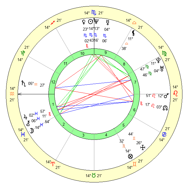 | Moon | 15 Pisces 1 | 25 Capricorn 37 | 0 Cancer 46 |