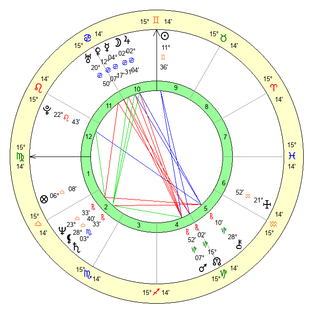 | Mercury | 4 Cancer 17 | 16 Gemini 47 | 9 Leo 46 |