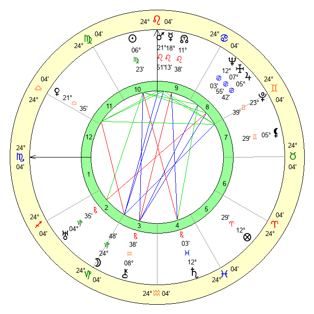 | Sun | 6 Virgo 23 | 7 Virgo 34 | 5 Capricorn 3 |