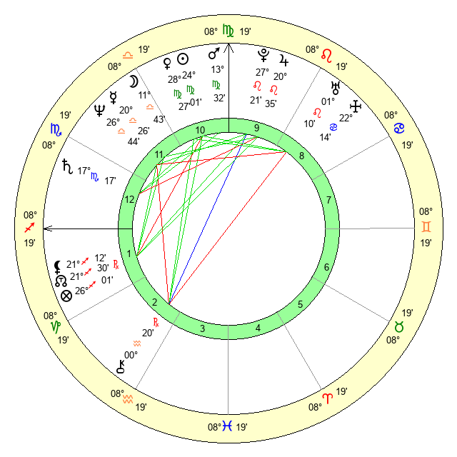 | Moon | 11 Libra 42 | 6 Leo 20 | 22 Aries 35 |