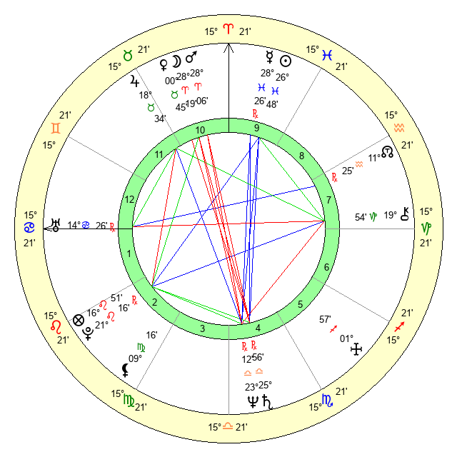 | Mars | 28 Aries 7 | 19 Cancer 37 | 18 Gemini 55 |