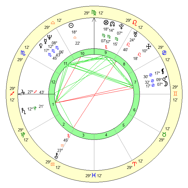 | Venus | 17 Scorpio 46 | 27 Virgo 18 | 6 Aquarius 20 |