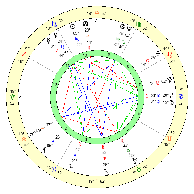 | Neptune | 24 Virgo 40 | 29 Pisces 44 | 25 Virgo 16 |
