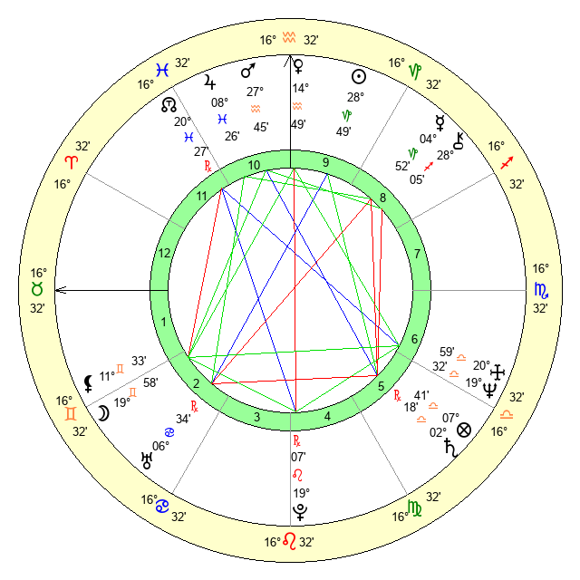 | Saturn | 2 Libra 50 | 16 Pisces 5 | 28 Virgo 28 |