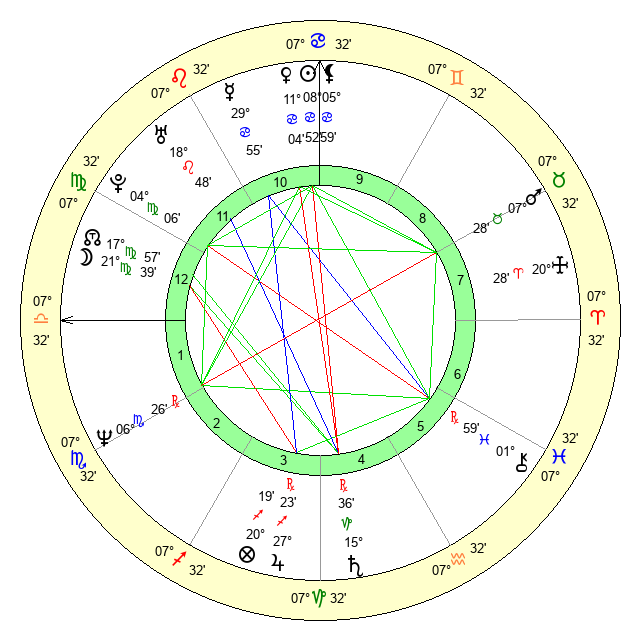 | Sun | 8 Cancer 52 | 9 Cancer 9 | 11 Virgo 10 |