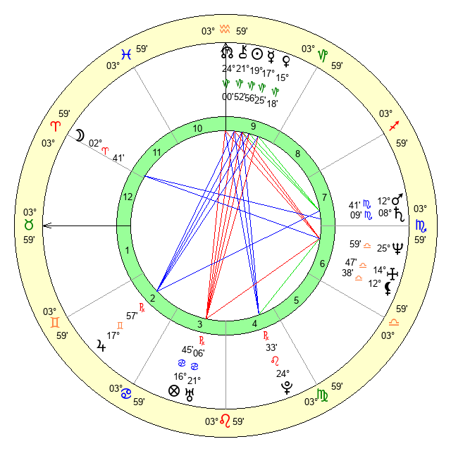 | Moon | 2 Aries 39 | 9 Gemini 27 | 6 Scorpio 9 |