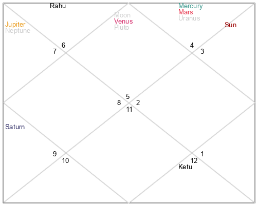 | Rahu | 8 Libra 0 | 21 Pisces 26 | 4 Libra 30 |