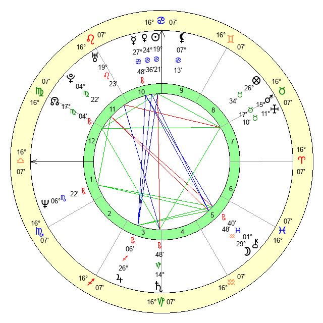 | Venus | 24 Cancer 37 | 7 Gemini 51 | 14 Libra 38 |