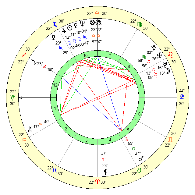 | Saturn | 23 Sagittarius 22 | 25 Pisces 32 | 0 Capricorn 56 |