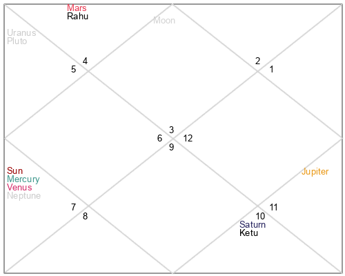 | Rahu | 3 Leo 8 | 14 Pisces 37 | 29 Cancer 48 |