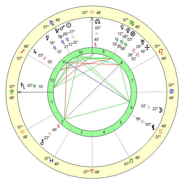 | Neptune | 6 Scorpio 21 | 0 Aries 0 | 8 Scorpio 33 |