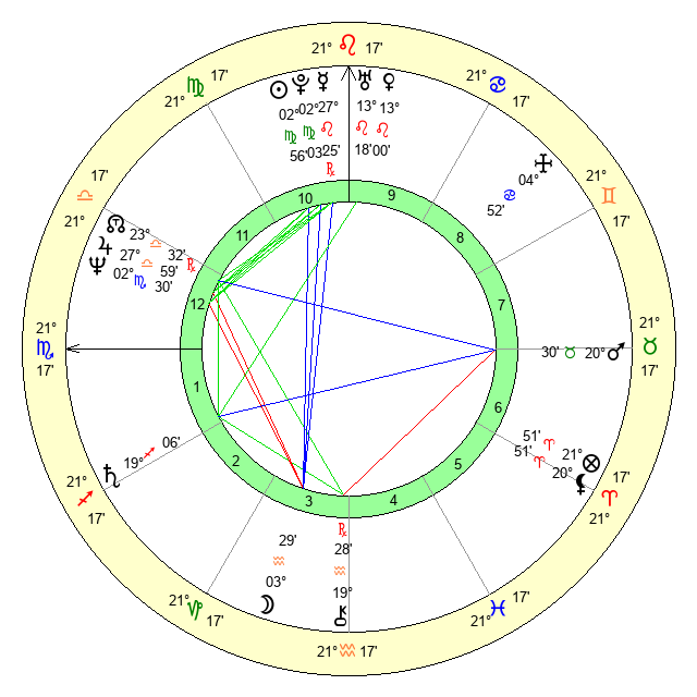 | Mercury | 27 Leo 24 | 17 Leo 42 | 25 Scorpio 6 |