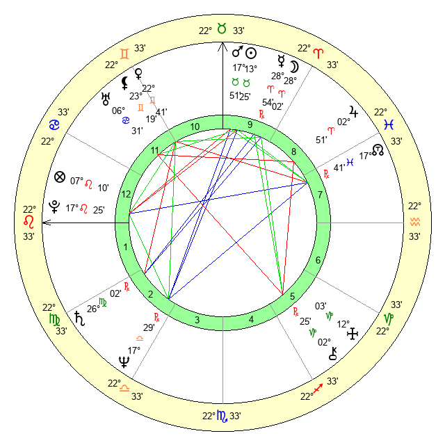 | Pluto | 17 Leo 25 | 3 Aquarius 48 | 18 Leo 42 |