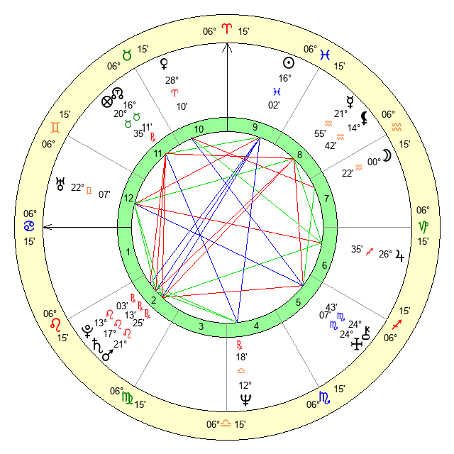 | Moon | 0 Aquarius 15 | 16 Gemini 40 | 27 Scorpio 29 |