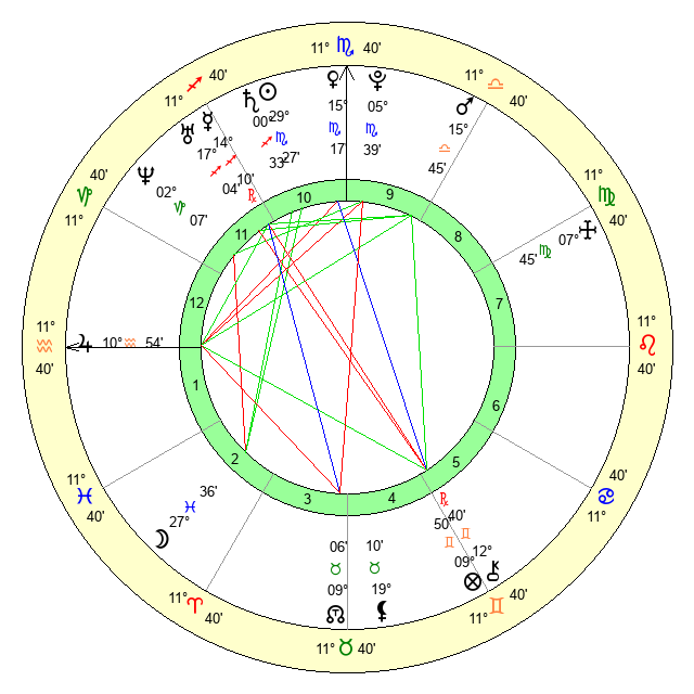 | Moon | 27 Pisces 41 | 16 Sagittarius 41 | 2 Virgo 51 |