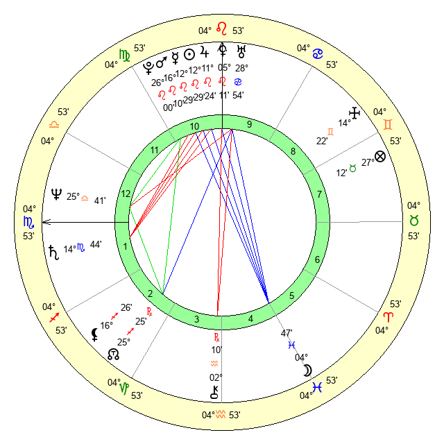 | Venus | 5 Leo 12 | 6 Cancer 26 | 2 Scorpio 6 |