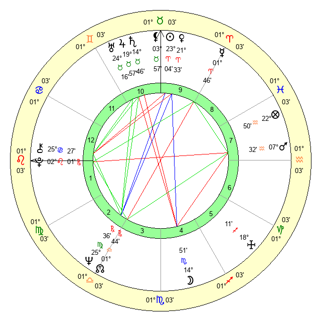 | Saturn | 14 Taurus 58 | 25 Pisces 52 | 25 Taurus 10 |