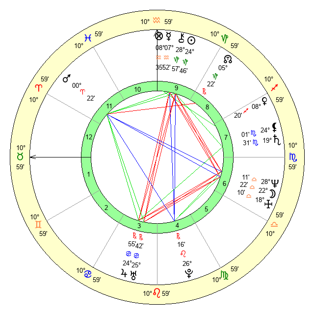 | Moon | 22 Libra 24 | 17 Leo 19 | 10 Taurus 1 |