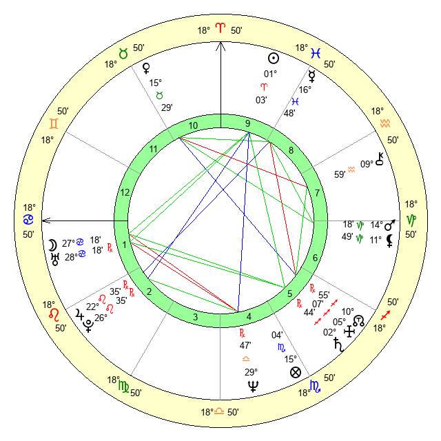 | Sun | 1 Aries 3 | 1 Aries 20 | 8 Gemini 16 |