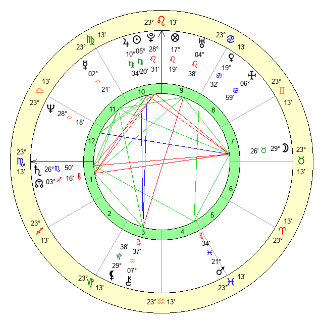 | Sun | 5 Virgo 20 | 5 Virgo 38 | 13 Scorpio 15 |