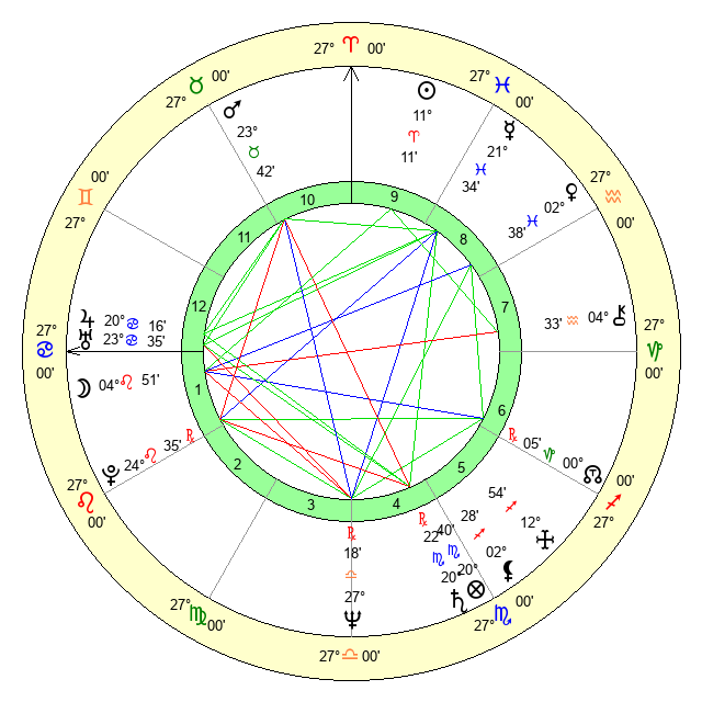 | Saturn | 20 Scorpio 53 | 24 Pisces 29 | 16 Scorpio 11 |