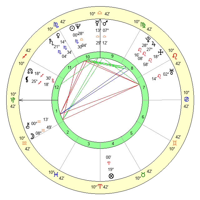 | Neptune | 28 Libra 4 | 29 Pisces 56 | 0 Scorpio 10 |