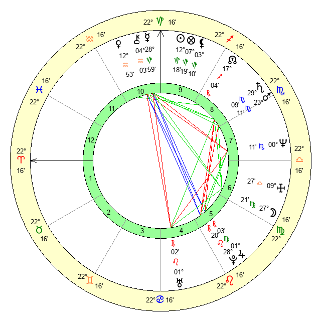 | Moon | 27 Virgo 19 | 17 Cancer 21 | 6 Aries 56 |