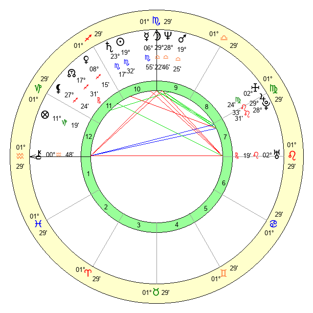 | Moon | 29 Libra 16 | 26 Leo 17 | 10 Taurus 13 |
