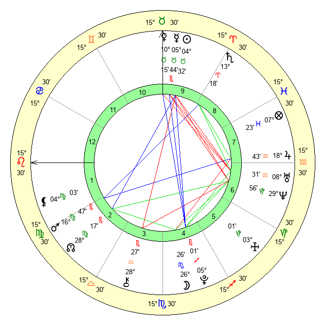 | Mars | 16 Virgo 47 | 2 Leo 47 | 20 Virgo 11 |