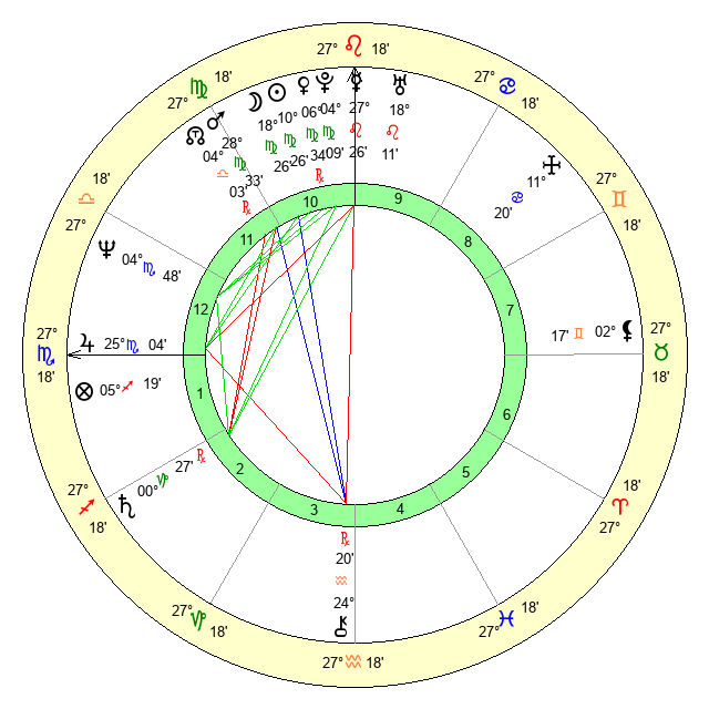 | Mars | 28 Virgo 33 | 17 Libra 41 | 12 Scorpio 30 |