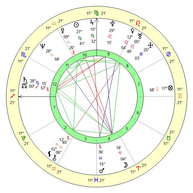 | Moon | 4 Aries 24 | 14 Virgo 58 | 22 Libra 57 |