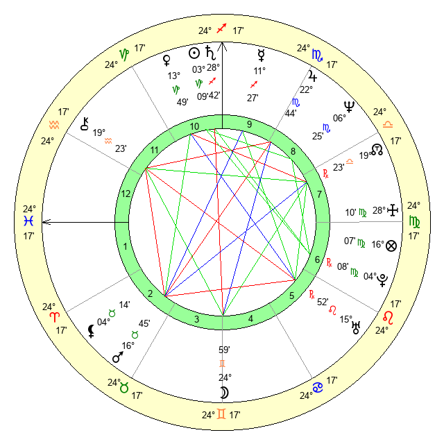 | Pluto | 4 Virgo 7 | 0 Aquarius 52 | 2 Virgo 46 |