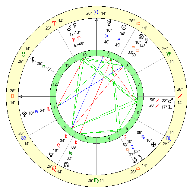 | Saturn | 2 Scorpio 47 | 20 Pisces 6 | 26 Libra 44 |
