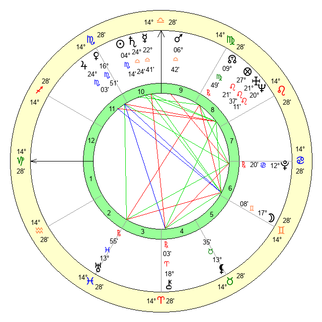 | Saturn | 24 Libra 58 | 25 Pisces 51 | 2 Scorpio 56 |