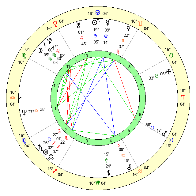 | Venus | 22 Gemini 36 | 7 Gemini 34 | 10 Leo 29 |