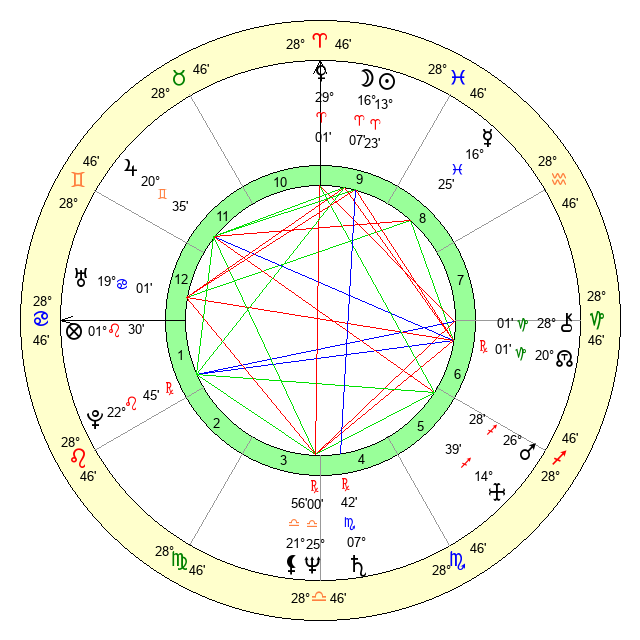 | Moon | 16 Aries 9 | 26 Gemini 40 | 20 Scorpio 39 |