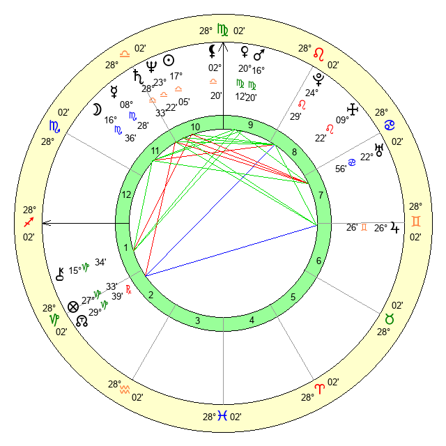 | Mars | 16 Virgo 20 | 12 Scorpio 31 | 0 Scorpio 45 |