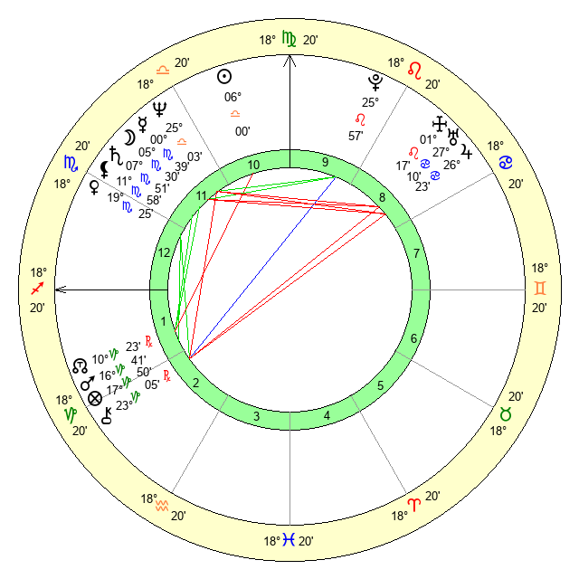 | Venus | 19 Scorpio 25 | 12 Virgo 29 | 14 Scorpio 57 |