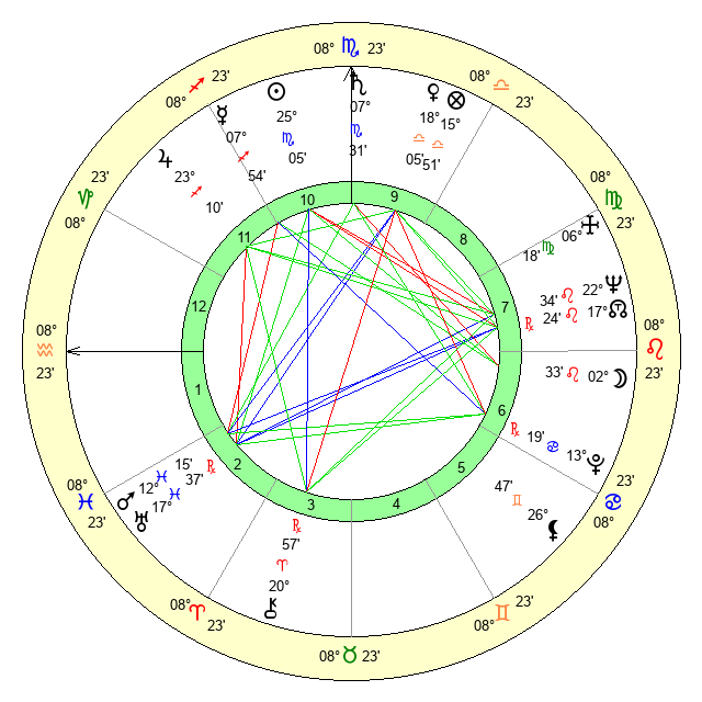 | Jupiter | 23 Sagittarius 0 | 25 Cancer 6 | 15 Capricorn 0 |