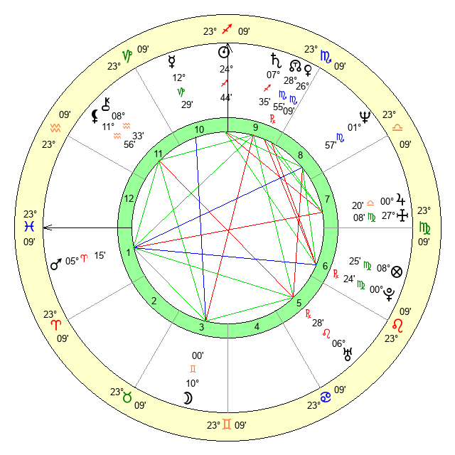 | Pluto | 0 Virgo 23 | 2 Aquarius 17 | 29 Leo 3 |
