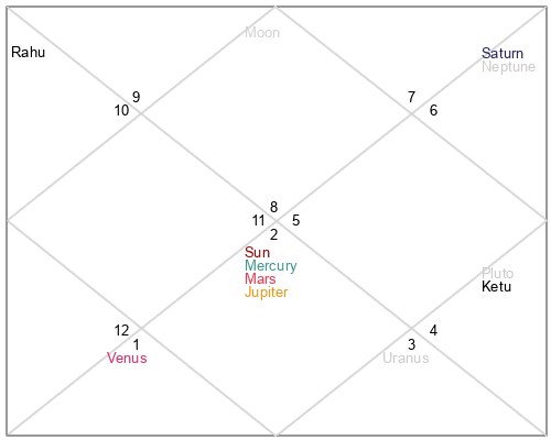 | Rahu | 6 Aquarius 18 | 23 Pisces 43 | 2 Aquarius 29 |