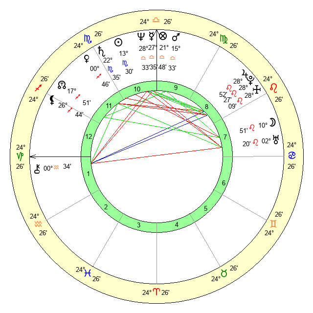 | Neptune | 28 Libra 33 | 29 Pisces 40 | 0 Scorpio 20 |