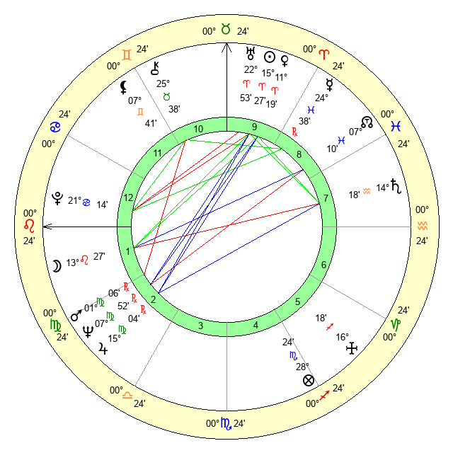 | Venus | 11 Aries 20 | 25 Pisces 43 | 4 Leo 27 |