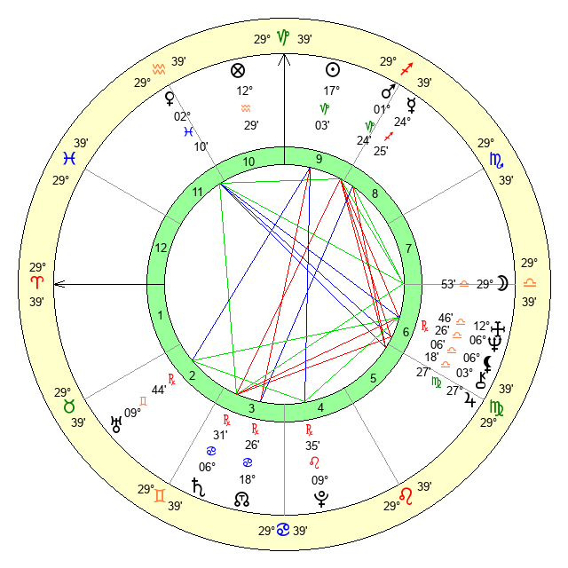 | Jupiter | 27 Virgo 17 | 12 Gemini 33 | 20 Virgo 26 |