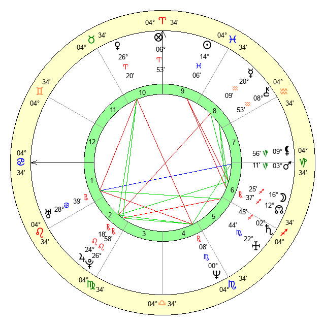 | Venus | 26 Aries 20 | 10 Aries 41 | 2 Cancer 54 |