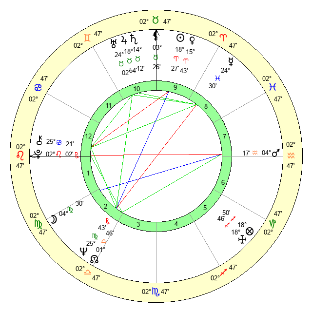 | Neptune | 25 Virgo 44 | 0 Aries 20 | 25 Virgo 6 |