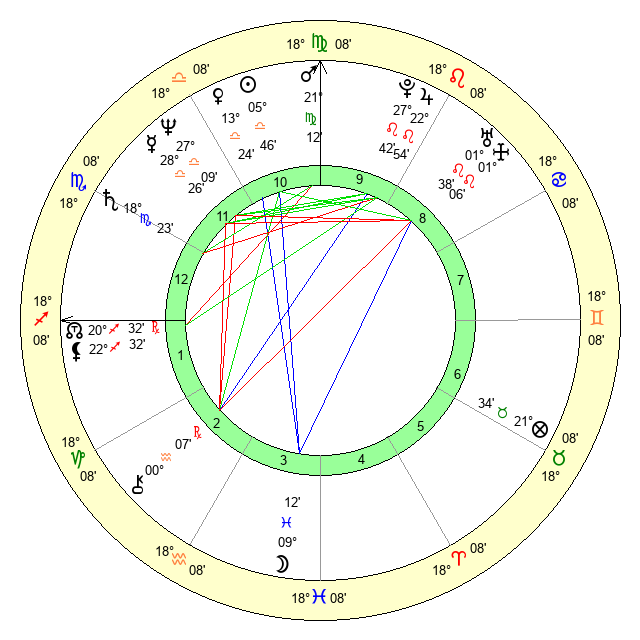 | Mars | 21 Virgo 12 | 4 Scorpio 59 | 6 Scorpio 16 |