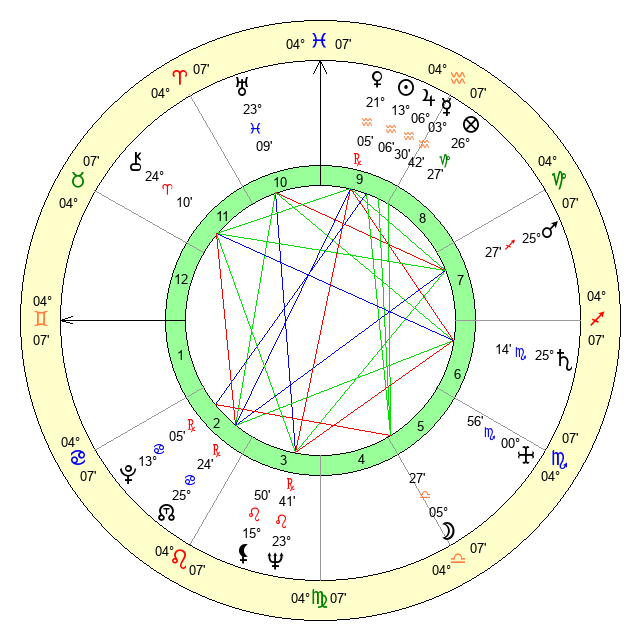 | Jupiter | 6 Aquarius 25 | 11 Gemini 16 | 25 Aquarius 13 |